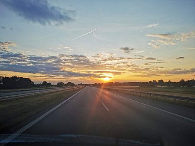 Zachodzące słońce nad polską autostradą